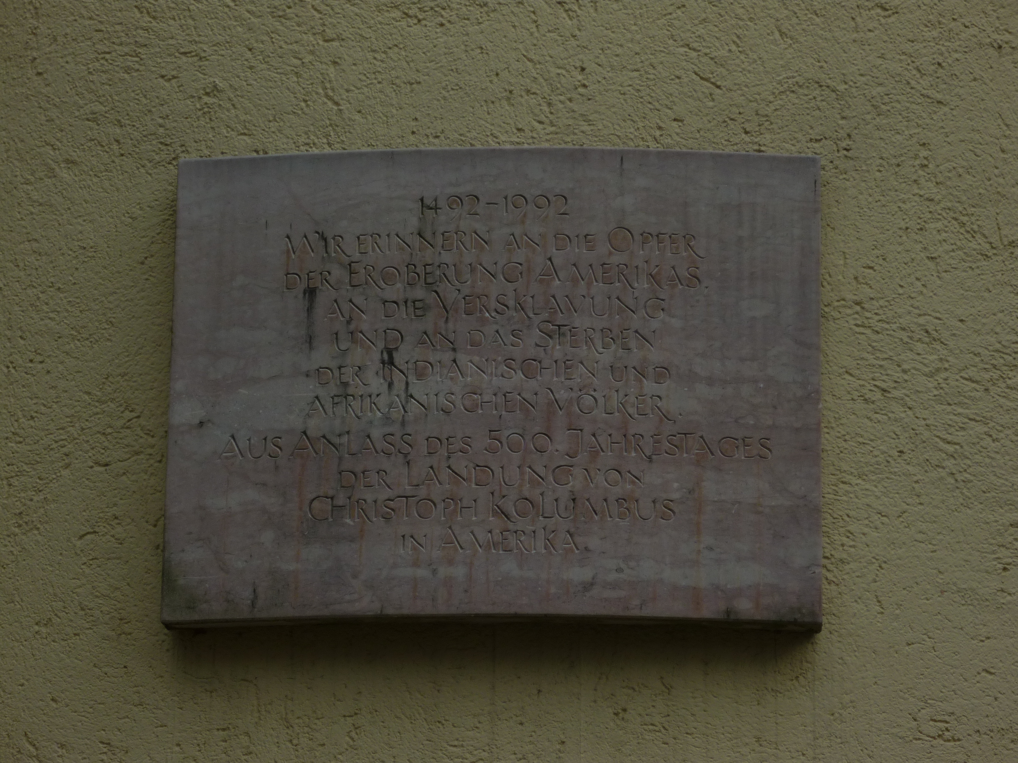 Gedenktafel zur Erinnerung an 500 Jahre Kolonialismus